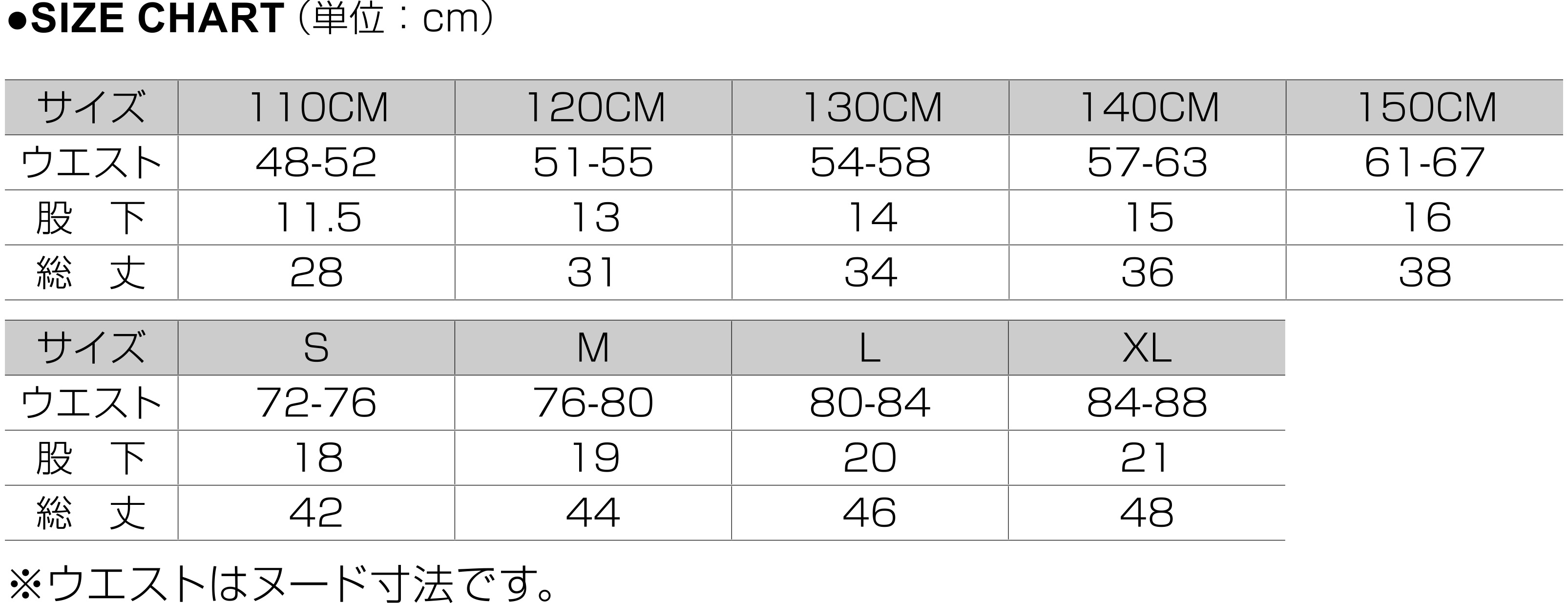 S M L XL 110 120 130 140 150