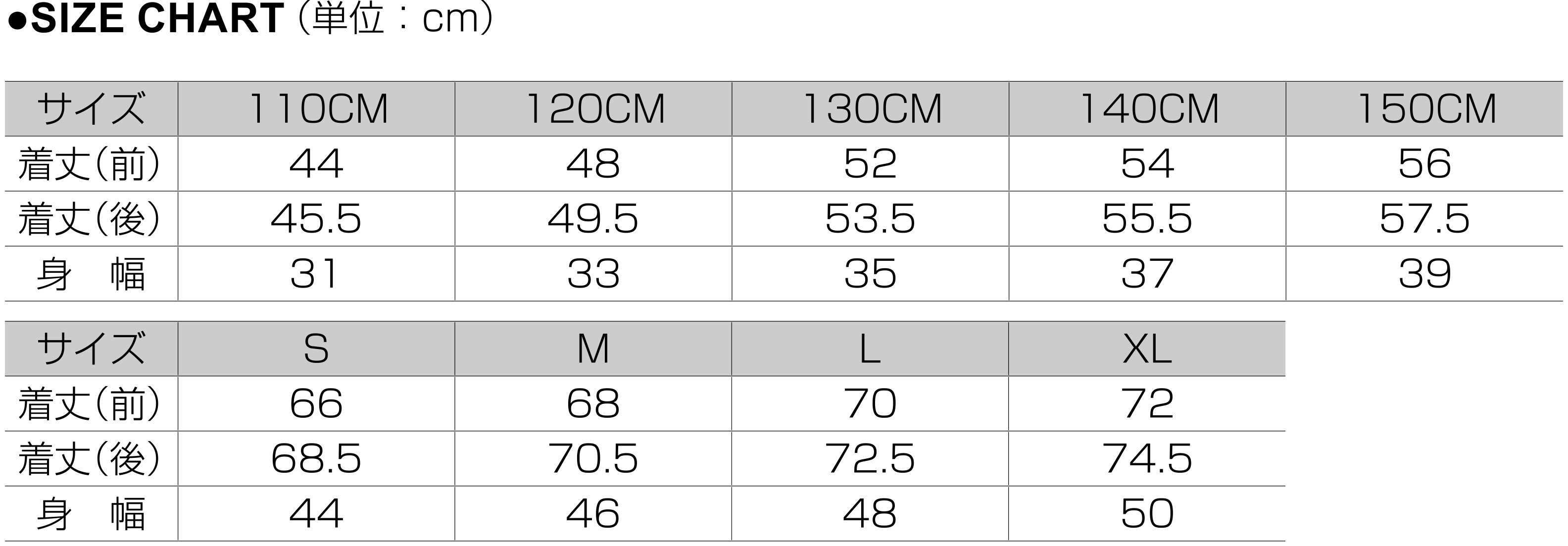 S M L XL 110 120 130 140 150