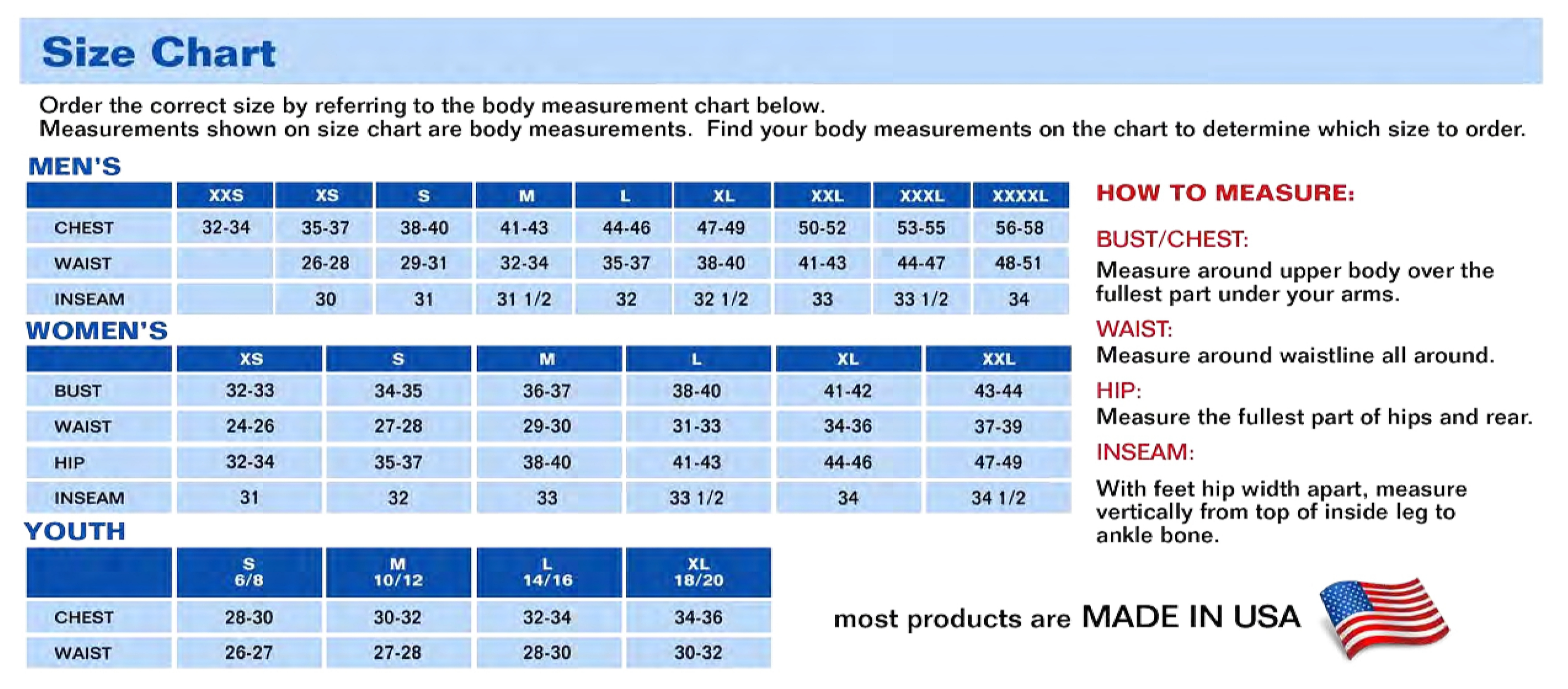 Chest 38-40 41-43 44-46 47-49 50-52 53-55